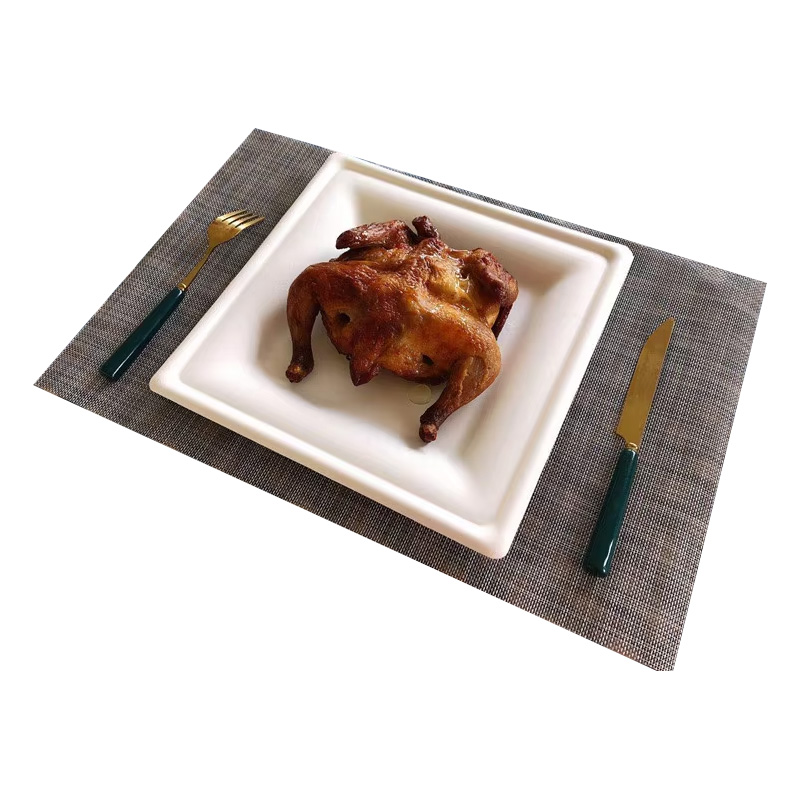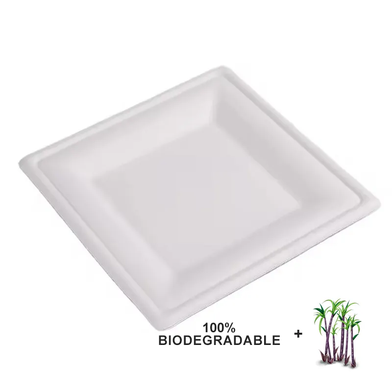 6/8/10 Inch Square Cake Plate Disposable Biodegradable Bagasse Snack Tray Eco Friendly Dinnerware Set for Party