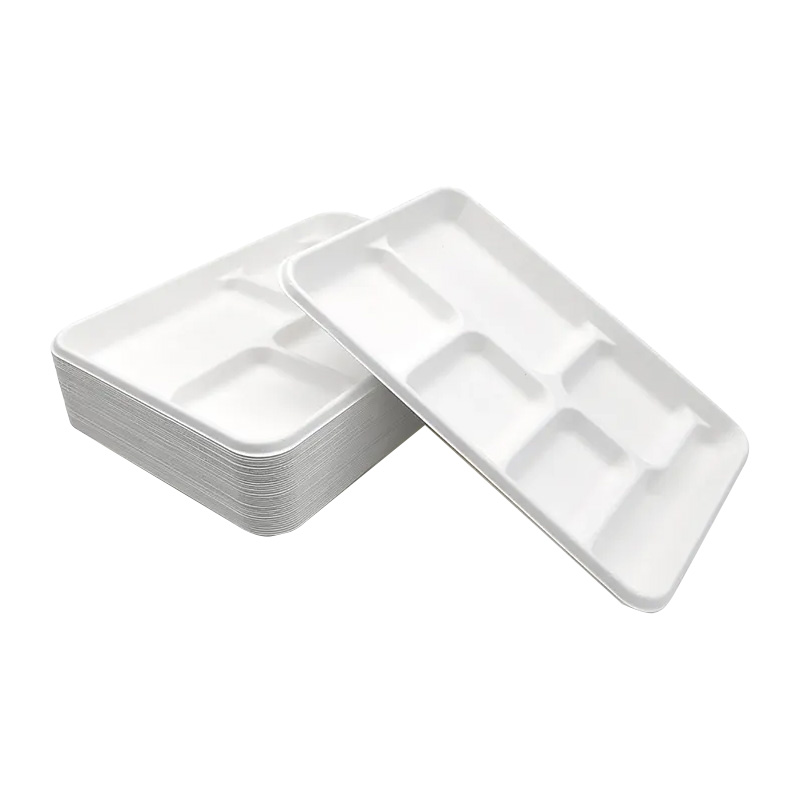 Biodegradable Eco Friendly 6-Compartment School Lunch Tray Bagasse Food Container