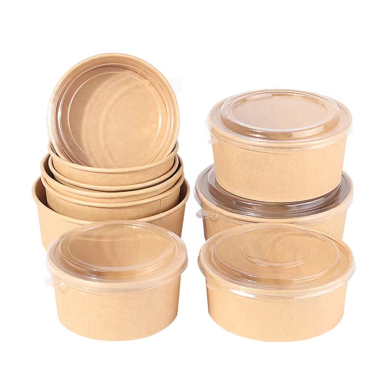 Wholesale Disposable Take Away Kraft Paper Salad Bowl With PET Lid Kraft Paper Bowl
