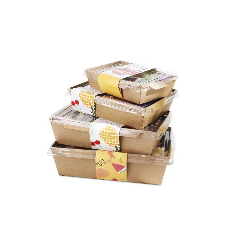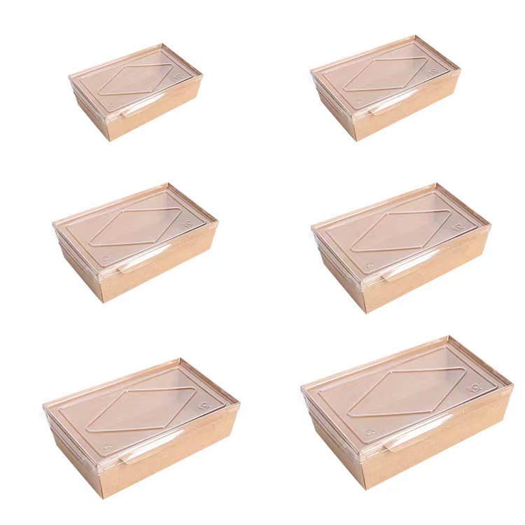 Kraft Paper Sushi Tray with PET Lid for Takeaway Sushi Snack Street Food