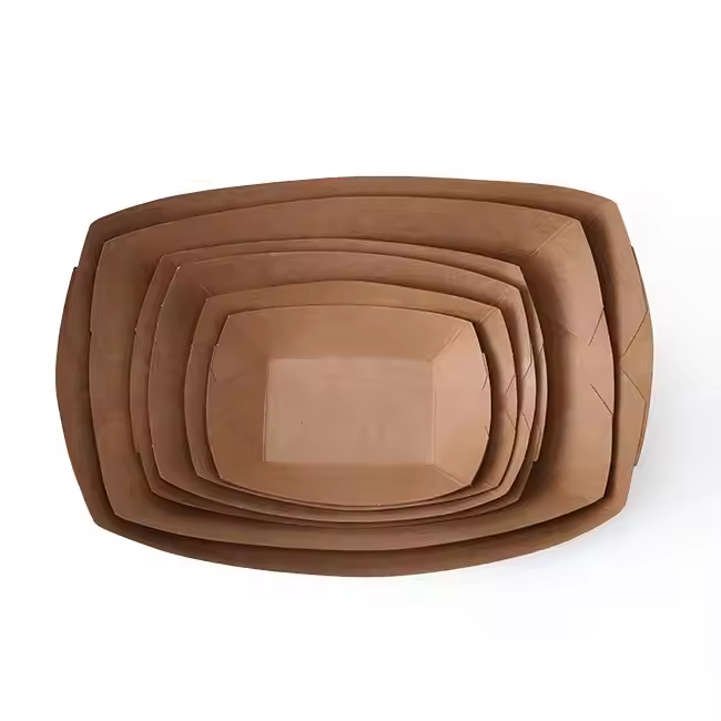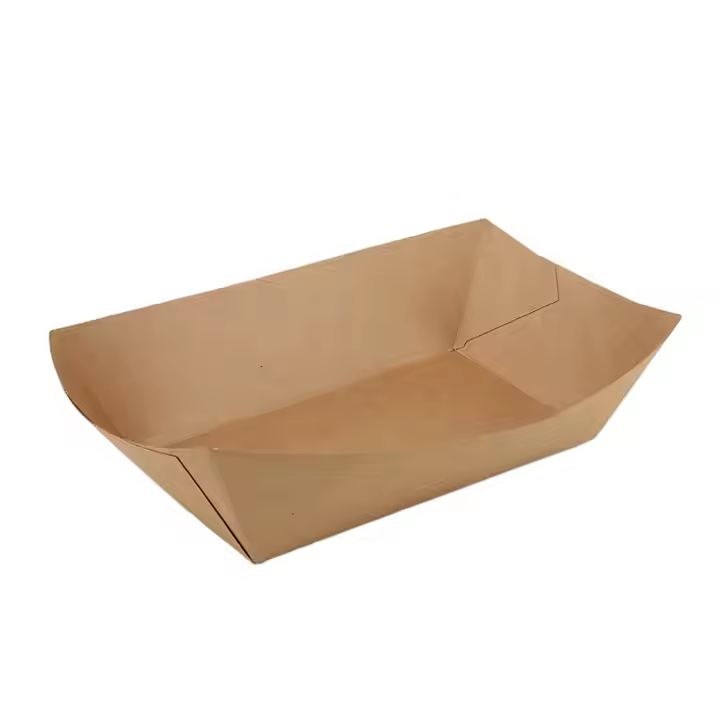 Disposable Snack Container Open Mouth Paper Plate Tray Laminated French Fries Chip Takeaway Kraft Paper Boat Box