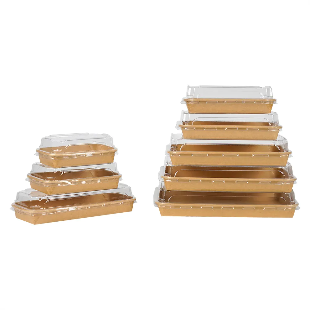 Kraft Paper Sushi Tray with PET Lid for Takeaway Sushi Snack Street Food